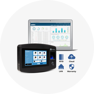 - Employees can punch with finger scanner, RFID Card, or PIN